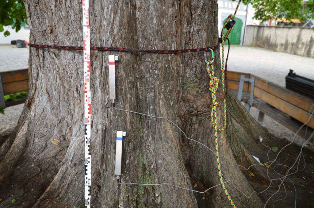 Damit die Kreuzlinger Ulme noch vielen Kindern Schatten spenden und die Menschen erfreuen kann, wurde an ihr ein Zugversuch durchgeführt. Dabei handelt es sich um die einzige Methode, bei welcher weitestgehend verletzungs- und zweifelsfrei die Stand- und Bruchsicherheit eines solchen Baumriesen festgestellt werden kann (ROLOFF 2023, S. 231). Die Ergebnisse ermöglichen eine gezielte und baumverträgliche Pflege für die kommenden Jahre – und hoffentlich Jahrzehnte – ohne das Umfeld des Baumes zu gefährden.